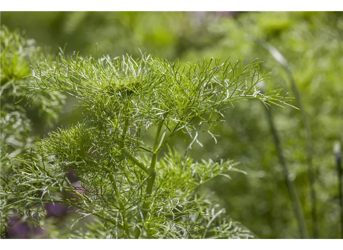 Der Dill (Anethum graveolens) ist eine beliebte, sommergrüne, einjährige Kräuterpflanze, die für ihre würzigen Blätter bekannt ist. Die tief geschlitzten Blätter sind grün gefärbt. Ab Juli bringt er angenehm duftende, gelbe Blüten hervor. An einem sonnigen Standort mit durchlässiger, lockerer und nährstoffreicher Erde wird er bis zu 50 cm hoch und 40 cm breit.
