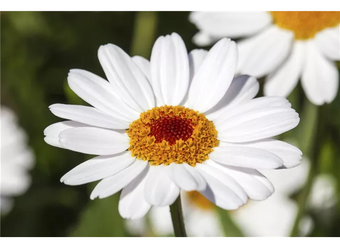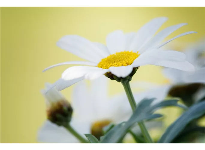 Die Strauchmargerite (Argyranthemum frutescens) ist eine Pflanze, die ab Mai mit prächtigen, weißen Blüten aufwartet. An einem sonnigen Standort mit durchlässiger und humoser Erde wird Argyranthemum frutescens, weiß bis zu 1 m hoch und 50 cm breit.