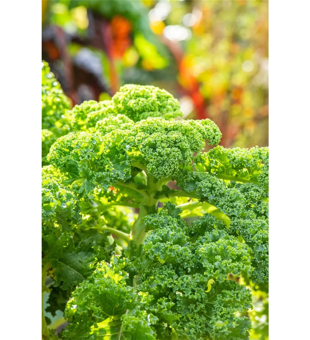 Bei diesem Gemüse können die gewellten Blätter ab November geerntet werden. Sie sind dunkelgrün und haben einen würzigen Geschmack.