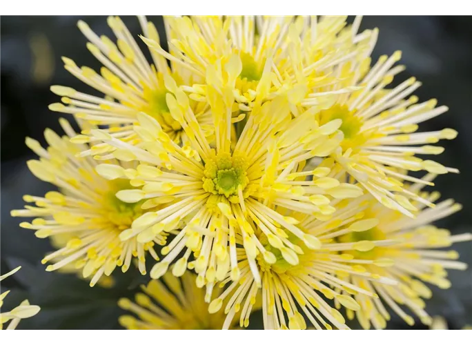 Die Schnitt-Chrysanthemen (Chrysanthemum indicum) ist eine sommergrüne Staude, die ab August mit prächtigen, hellgelben Blüten aufwartet. Ihre gefingerten Blätter sind dunkelgrün. An einem sonnigen Standort mit durchlässiger Erde wird Chrysanthemum indicum 'Annecy Yellow'(s) bis zu 80 cm hoch und 80 cm breit. Diese Staude ist auch sehr schön in Kübel auf Balkon oder Terrasse.