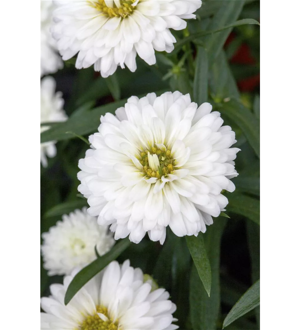 Die Aster (Chrysanthemum) ist eine sommergrüne Staude, die ab September mit prächtigen, gefüllten Blüten aufwartet. Ihre eiförmigen Blätter sind dunkelgrün. An einem sonnigen Standort mit durchlässiger, humoser und sandiger Erde wird Chrysanthemum 'Showmakers'® bis zu 1 m hoch und 1 m breit. Diese Staude ist auch sehr schön in Kübel auf Balkon oder Terrasse.