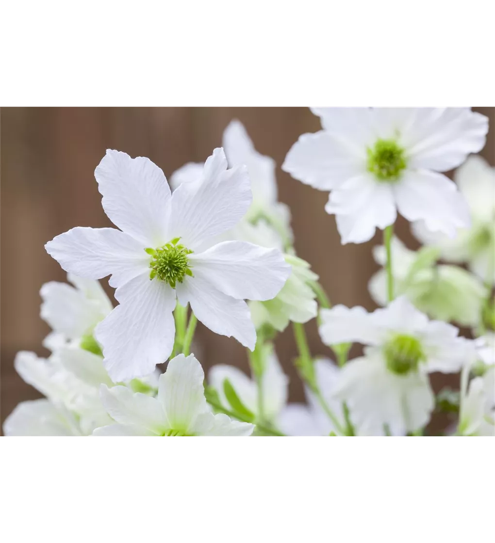 Von Februar bis April erscheinen die Blüten von Clematis forsteri 'Early Sensation'. Sie sind von weißer Farbe.