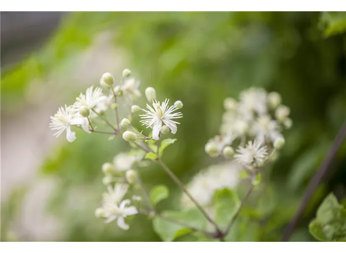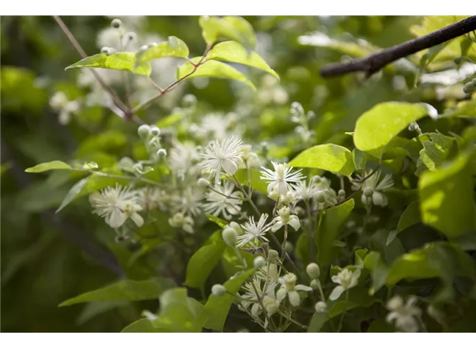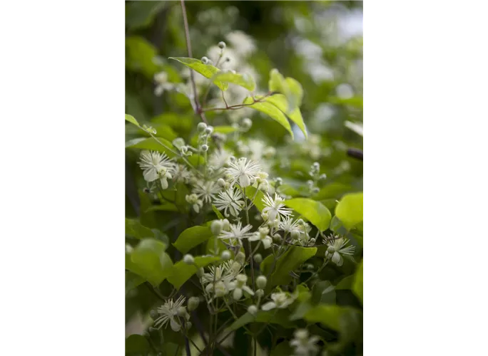 Die Gemeine Waldrebe (Clematis vitalba) ist eine sommergrüne Kletterpflanze mit gefiederten, ganzrandigen, mittelgrünen Blätter. Ab Juli bringt sie cremeweiße Blüten hervor. Die silberweißen Früchte der Gemeinen Waldrebe sind ein Blickfang. An einem sonnigen bis halbschattigen Standort mit durchlässiger und humoser Erde wird sie bis zu 10 m hoch und 8 m breit.