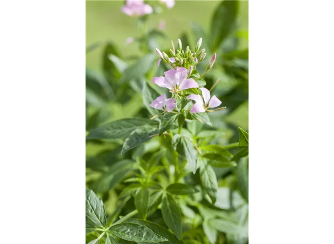 Von Juni bis Oktober erscheinen die Blüten von Cleome 'Señorita Carolina'.