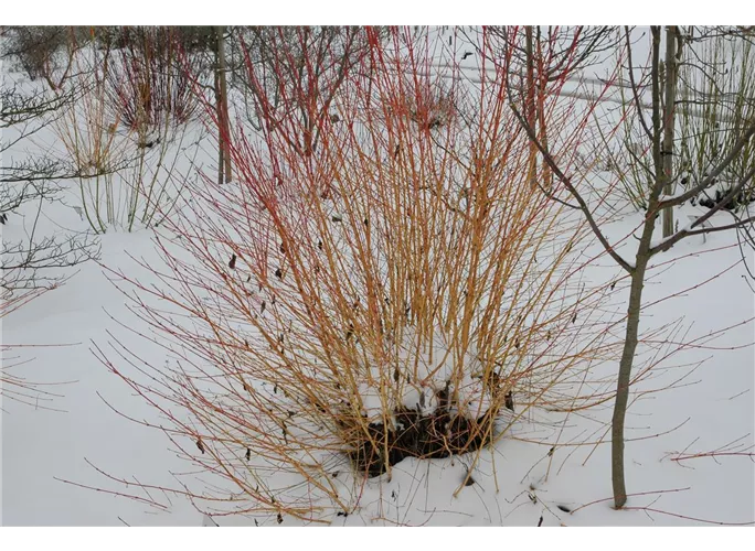 Cornus sanguinea 'Winter Flame' verträgt Temperaturen bis -33°C.