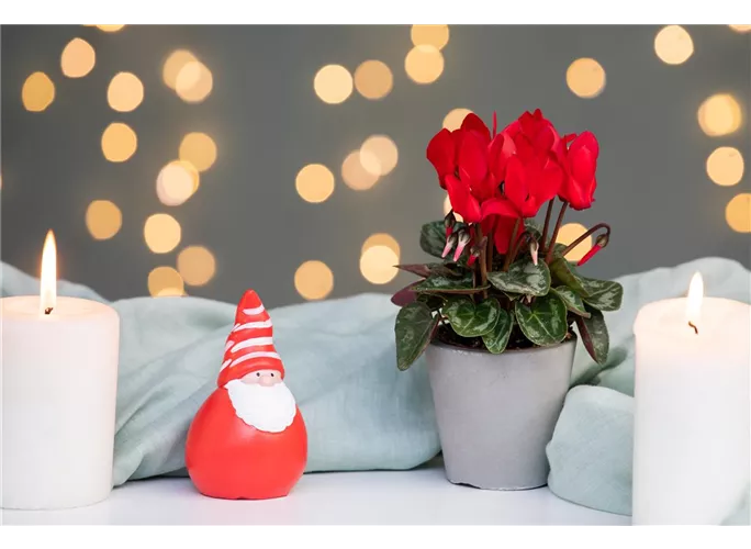 Cyclamen persicum, rot verträgt Temperaturen bis 0°C. Eine Überwinterung bei 12°C bis 15°C ist daher ratsam.