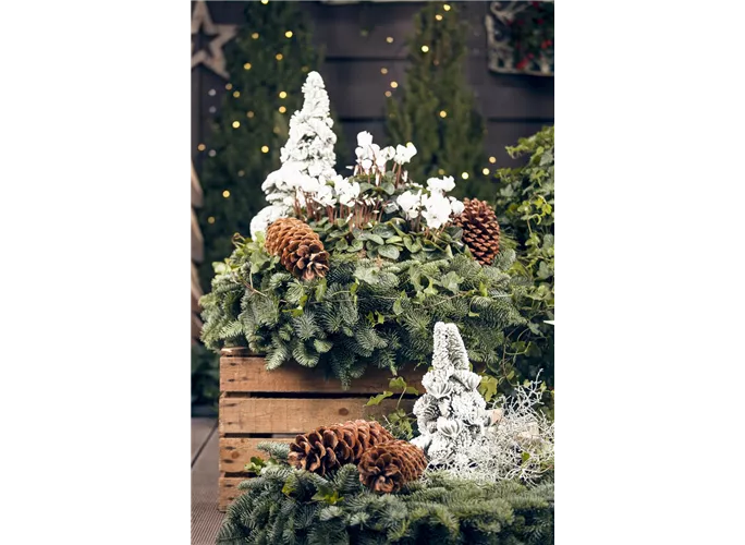 Cyclamen persicum, weiß verträgt Temperaturen bis 0°C. Eine Überwinterung bei 12°C bis 15°C ist daher ratsam.