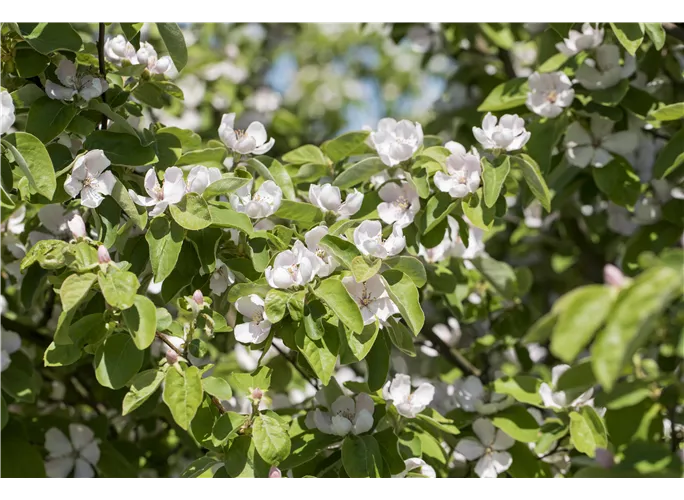 Cydonia oblonga 'Konstantinopeler Apfelquitte' ist bekannt für seinen Gehalt an Vitamin A.