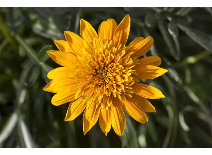 Von April bis September erscheinen die 2,5 cm bis 3 cm großen Blüten von Gazania. Die Blüten sind körbchenartig.