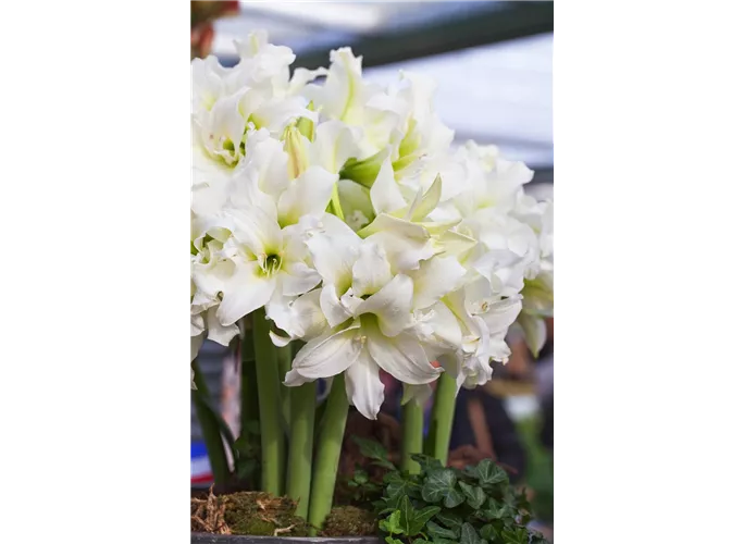 Hippeastrum 'Ice Queen' kommt mit wenig Wasser zurecht und übersteht auch Trockenperioden.