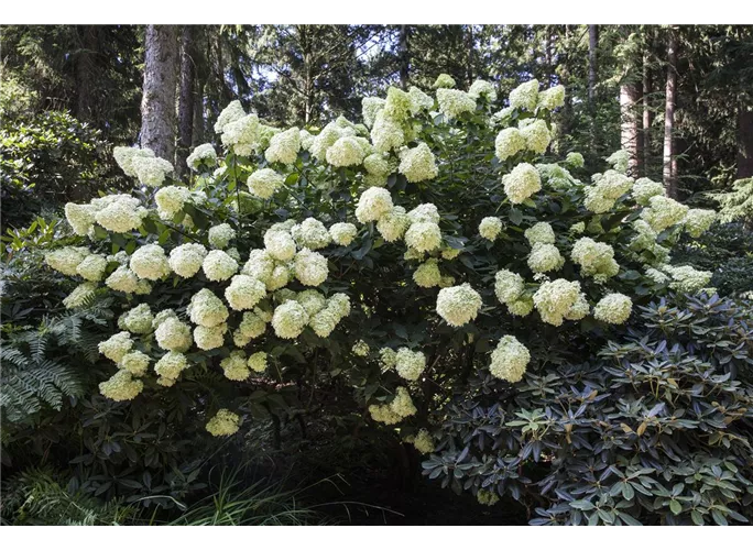 Die Rispenhortensie (Hydrangea paniculata) ist ein sommergrünes Laubgehölz mit lanzettlichen, mittelgrünen Blätter. Ab Juli bringt sie angenehm duftende, weiße Blüten hervor. An einem sonnigen bis halbschattigen Standort mit durchlässiger und humoser Erde wird sie bis zu 4 m hoch und 3 m breit. Im Kübel auf Balkon oder Terrasse macht dieses Laubgehölz ebenso eine gute Figur.