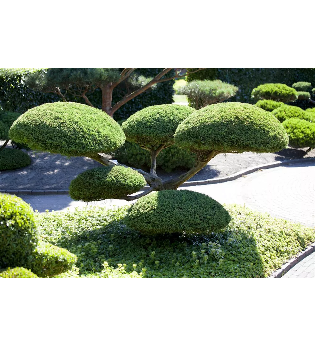 Dieses Nadelgehölz kann mit entsprechenden Schnittmaßnahmen in Form gehalten werden.