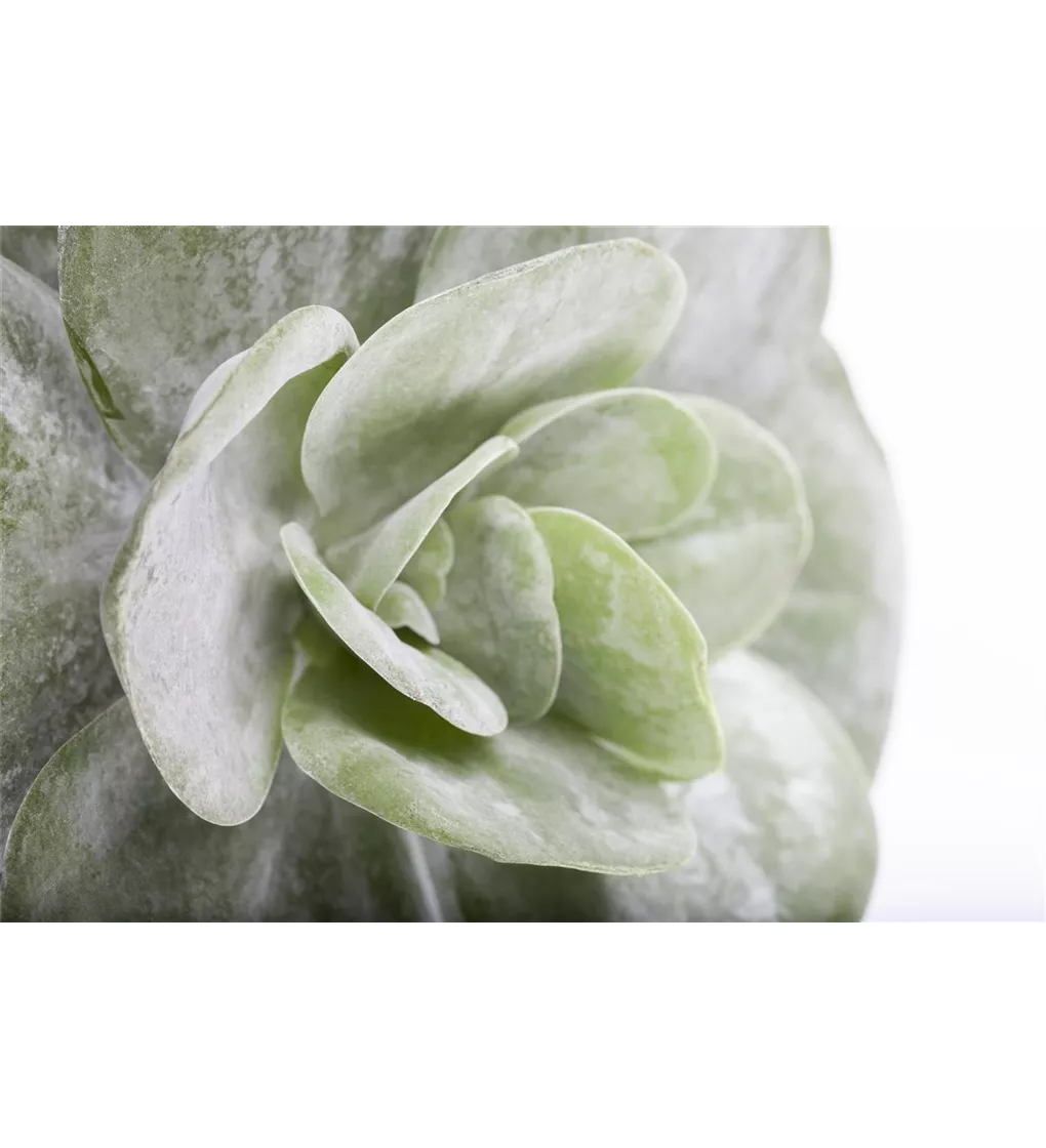 Der Wüstenkohl (Kalanchoe thyrsiflora) ist eine dekorative Zimmerpflanze mit dickfleischigen, grünen Blätter, gezeichnet mit einem rotem Rand. Ein Highlight sind seine gelben Blüten, die ab März erscheinen. An einem sonnigen Standort und in durchlässigem Substrat wird er bis zu 30 cm hoch und 20 cm breit.