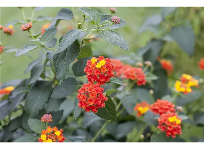 Das Wandelröschen (Lantana camara) ist eine Pflanze, die ab Juni mit prächtigen, angenehm duftenden, orangegelben Blüten aufwartet. An einem hellen Standort mit durchlässiger und nährstoffreicher Erde wird Lantana camara bis zu 1,5 m hoch und 1,5 m breit.
