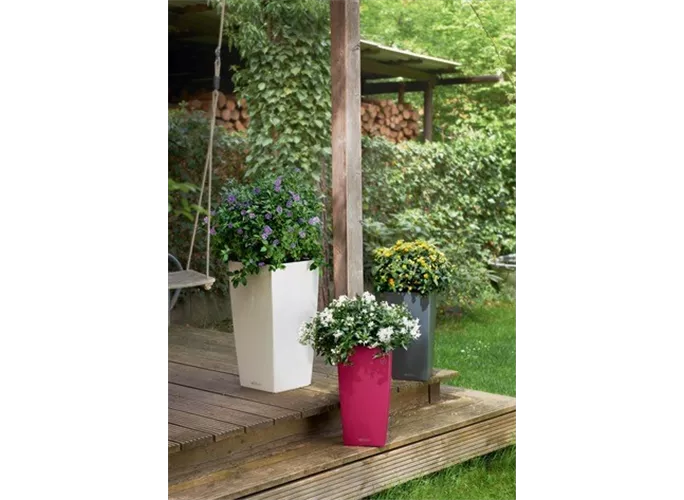 Der Lechuza Cubico Color 22 Weißist ein komfortabler und optisch ansprechender Pflanztopf für den Innen- und Außenbereich. Dank seiner am Boden angebrachten Schraube, die Staunässe und Überlaufen von Wasser vermeidet und seinem Gehäuse aus durchgefärbtem, bruchsicherem Kunststoffist er Winter- und Wetterfest. Er hat ein Erdvolumen von ca. 6 Litern und ein 2 Liter Volumen zum Speichern von Wasser. Außerdem verfügt er über einen integrierten Wasserstandsanzeiger. Im Lieferumfang ist der Lechuza Cubico Color 22 in Weiß, ein Pflanzeinsatz und ein Bewässerungssystem mit dem Substrat Lechuza-Pon enthalten.