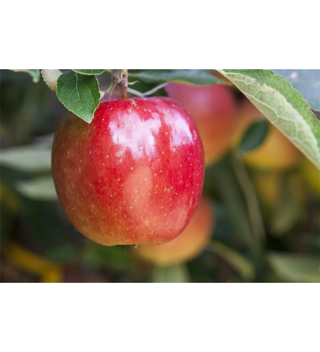 Der Apfel 'Braeburn' (Malus domestica) ist bekannt für seine süß-säuerlichen Früchte, die ab Oktober voll ausgereift sind und eine einladende gelb-rote Farbe haben. Hellrosafarbene Blüten gehen den Früchten ab April voraus. Malus domestica 'Braeburn' ist sommergrün. Seine mittelgrünen Blätter sind eiförmig und gesägt. An einem sonnigen bis halbschattigen Standort mit durchlässiger und nährstoffreicher Erde wird er bis zu 4 m hoch und 3 m breit.