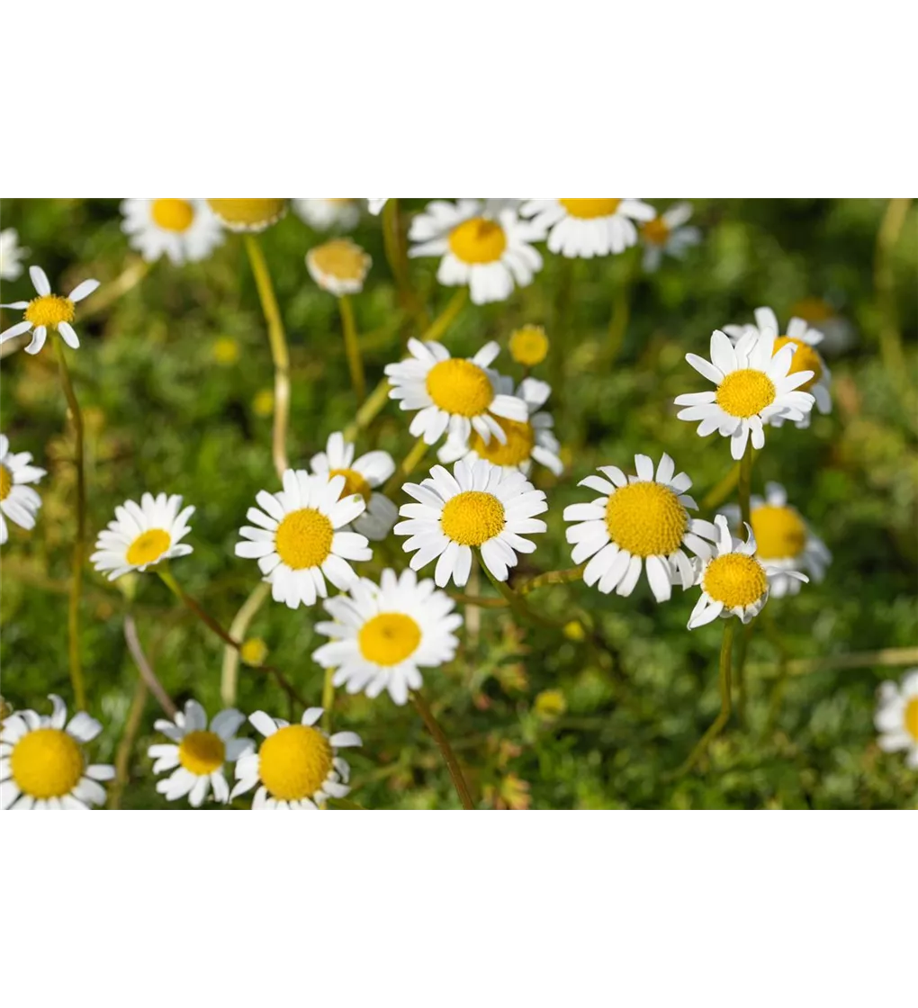 Die Kaukasische Scheinkamille (Matricaria caucasica) ist eine wintergrüne Staude, die ab Mai mit prächtigen, weißen Blüten aufwartet. Ihre gefiederten Blätter sind dunkelgrün. An einem sonnigen Standort mit durchlässiger, nährstoffreicher und lehmiger Erde wird Matricaria caucasica bis zu 15 cm hoch und 25 cm breit. Diese Staude ist auch sehr schön in Kübel auf Balkon oder Terrasse.