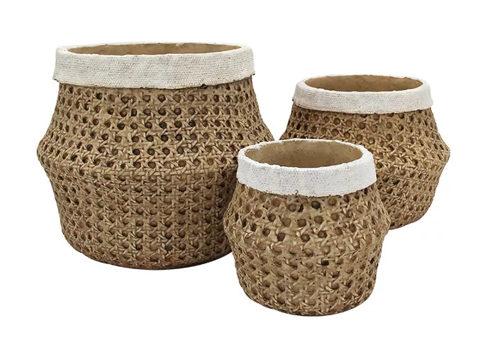 Zementtopf natur rund in Korboptik