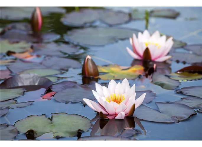 Seerosen lieben ruhige Gewässer, daher sollte in einem Seerosenteich auf einen Springbrunnen und andere "Wellenerzeuger" verzichtet werden.