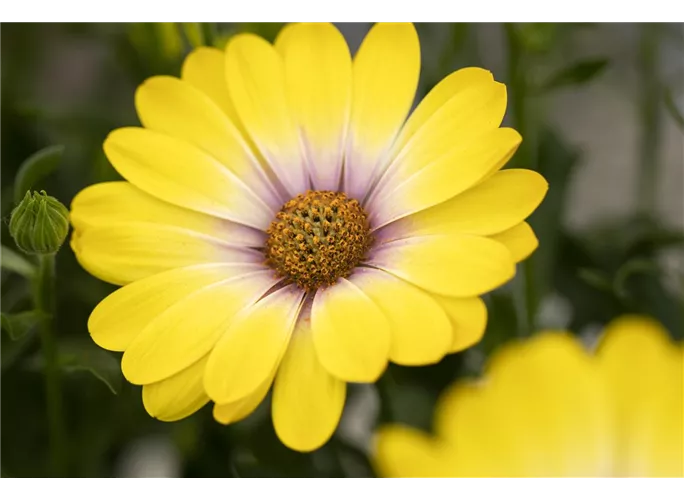 Von Mai bis November erscheinen die 5 cm bis 8 cm großen Blüten von Osteospermum ecklonis 'SummerHero'®. Sie sind von weißer, gelber, orangefarbener oder cremeweißer Farbe. Die Blüten sind körbchenartig.