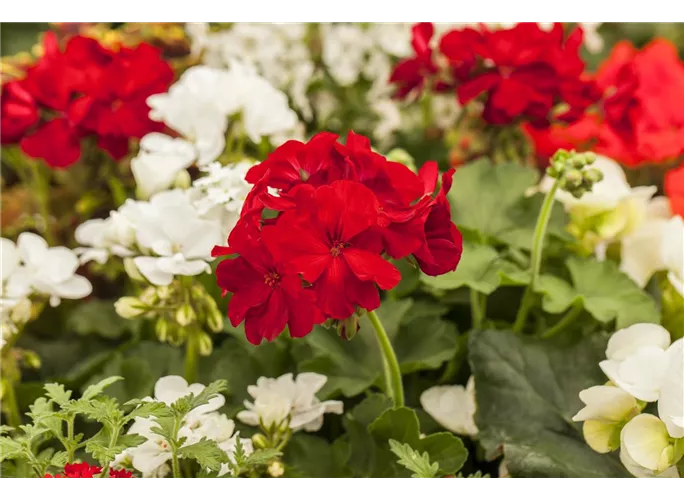 Zur Gruppenbepflanzung lässt sich die Zonal-Pelargonie gut verwenden, aber auch als Grabbepflanzung, auf Balkon oder Terrasse oder in Klein- und Vorgärten.