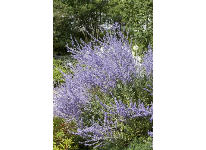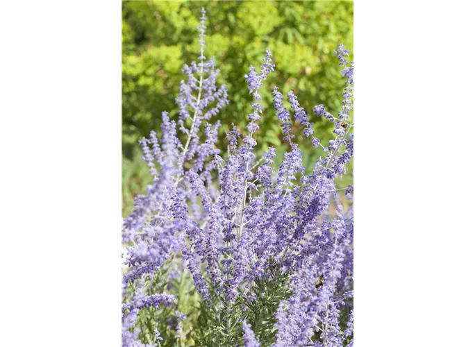 Die Kleine Blauraute 'Little Spire'® (Perovskia atriplicifolia) ist ein sommergrünes Laubgehölz mit grau-grünen Blätter. Ab August bringt sie angenehm duftende, blaue Blüten hervor. An einem sonnigen Standort mit durchlässiger und sandiger Erde wird sie bis zu 80 cm hoch und 80 cm breit.