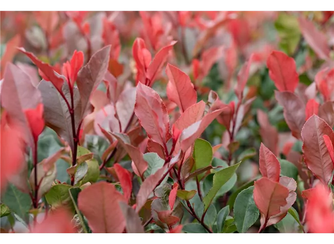 Photinia fraseri 'Little Red Robin' verträgt Temperaturen bis -16°C.