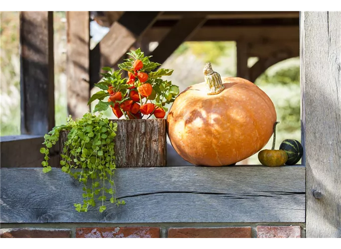 Die Früchte der Lampionblume sind ab August voll ausgereift und zieren sie mit ihrer orange-roten Farbe.