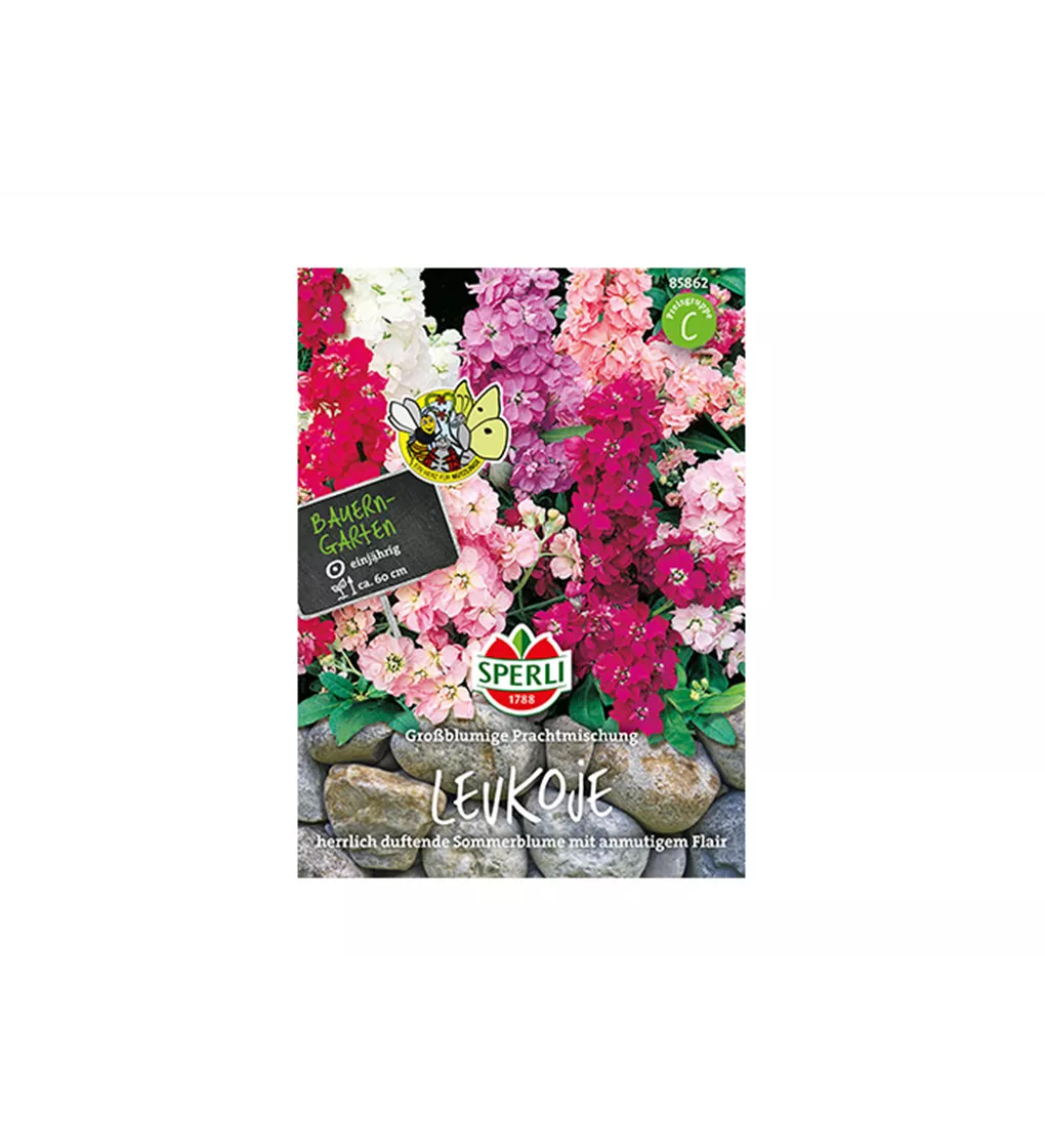 Die Großblumige Mischung enthält einjährige, großblumige und herrlich duftende Sommerblumen in Weiß und verschiedenen Rottönen. Bestens geeignet für Beete, Rabatten und Bauerngärten sowie als Schnittblumen. Höhe: 40 cm.